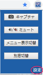 ポップアップメニュー右下の『設定』や拡張機能アイコン右クリック→『オプション』などから設定画面へ