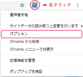 2.別のウインドウで拡張機能のアイコンを右クリック→『オプション』で設定画面を開く