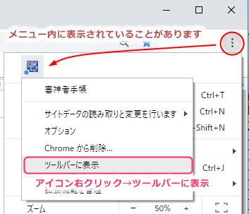 アイコンを右クリック→「ツールバーに表示」でツールバー上に表示